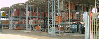Al igual que en las naves de estanterías cantiléver, los bastidores de la estantería para paletas de perfiles en U laminados en caliente, soportan la carga de la construcción del techo y pared. Para la construcción del techo se cortan arriba diagonalmente los marcos de los estantes y luego son unidos con los perfiles de techo. Dependiendo de su ubicación geográfica, se consideran las cargas locales de nieve y viento, incluso el riesgo sísmico en zonas propensas a terremotos, para el anclaje óptimo al suelo. Naves autoportantes de OHRA – Diseño personalizado Las naves de estanterías de paletización se pueden fabricar como naves abiertas o completamente cerradas, incluso con puertas y portones. Los perfiles de marco troquelados de las estanterías de paletización sirven al mismo tiempo para anclar el revestimiento de la pared de la nave de estanterías. Si se requiere, OHRA no solamente puede realizar el revestimiento de las paredes, sino también la cubierta de tejado, incluso el drenaje del mismo. Naves de estanterías de paletización de OHRA - Ventajas Posibilidad de almacenamiento más rentable en comparación con la construcción de una nave convencional Ahorro por las prestaciones por parte del cliente del revestimiento del techo y paredes El cálculo de los perfiles, los planos y la planificación del montaje están incluidos en nuestros servicios Asesoramiento, planificación, fabricación y montaje por un solo proveedor Gran cantidad de accesorios para un diseño personalizado Los materiales de construcción en paletas pueden almacenarse de forma segura en naves autoportantes. Nave autoportante de estanterías de paletización Nave drive-in en un almacén de materiales de construcción. Las robustas estanterías de paletización galvanizadas en caliente sirven de subestructura para el techo y las paredes. Nave de estanterías de paletización Ocho niveles de almacenamiento superpuestos para el almacenamiento de materiales de construcción. Estanterías de paletización como nave autoportante completa.