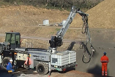 robot de gunitar Spritz CSS3 , que ofrece una gran versatilidad y seguridad extrema. Presenta un brazo de tres secciones con un elemento telescópico, motorización eléctrica o diesel. Una de sus características más importante es la Fiabilidad, tanto en trabajos a cielo abierto como en el interior de túneles.