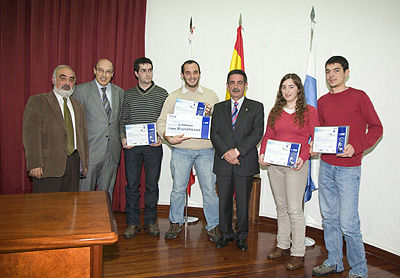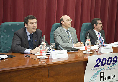 "Trabajos clasificados Premios Basf CC 2009" acompañados por el director de la Escuela de Caminos, Pedro Serrano; el Director de Admixture Systems en España de
