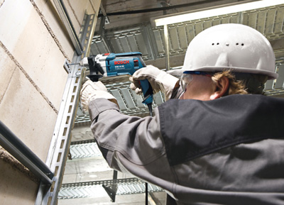 Una de las características tradicionales de las herramientas eléctricas de Bosch para profesionales es la seguridad para el usuario. Un buen ejemplo es la innovadora empuñadura adicional del nuevo GSB 16 RE Professional, que combina de forma óptima los aspectos de seguridad y de confort. Con un mínimo de esfuerzo se pueden regular doce posiciones distintas de la empuñadura. El seguro de fijación garantiza al usuario que la empuñadura no se mueva durante el trabajo.