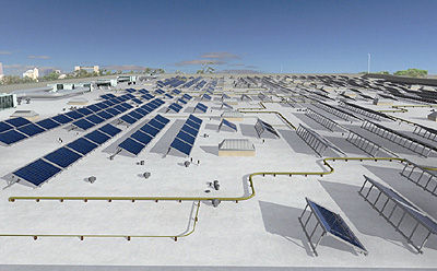 Genera 09. Solyndra es un concepto totalmente nuevo en sistemas fotovoltaicos, especialmente desarrollado para tejados planos o de ligera inclinación, y con baja capacidad de carga, como son las cubiertas de los edificios comerciales y naves industriales. El módulo