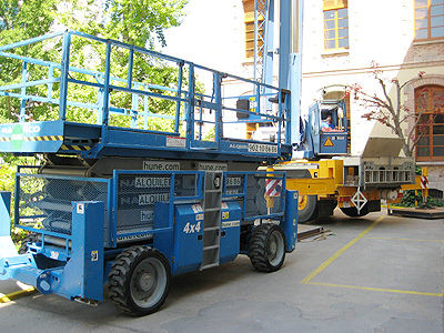 La empresa de alquiler de maquinaria y plataformas elevadoras recomendó el alquiler de una plataforma de tijera de 18 metros. Sus contraprestaciones en cuanto a accesibilidad, altura y versatilidad garantizaban el éxito de la maniobra.