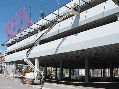 Era la mejor opción para garantizar la seguridad y el éxito de la maniobra. Las dos plataformas de Hune ofrecían la altura y la maniobrabilidad requerida para instalar una red de seguridad de dos metros de anchura en todo el perímetro del helipuerto. La actuación de las plataformas en el voladizo del edificio durará entre 15 días y un mes.