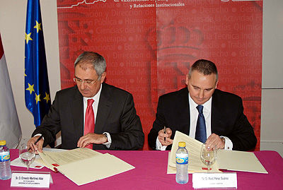 El convenio, cuya firma ha reunido en Toledo a Ernesto Martínez Ataz, Rector de la UCLM y a Raúl Pérez, director de la fábrica de