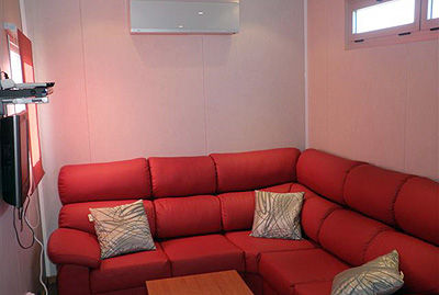 Todos los detalles El nuevo módulo camerino es compacto, se transporta muy fácilmente, sin necesidad de montaje y desmontaje, lo que repercute en el precio final. El módulo camerino mide 7x2,40 metros y está totalmente habilitado con espacio de baño y camerino para garantizar el máximo confort.