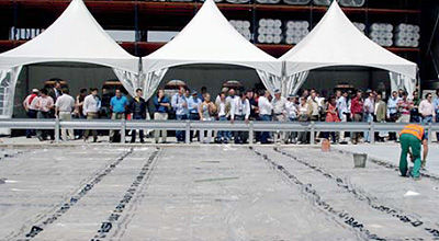 Los asistentes al congreso tuvieron un día de parte teórica, en la que el Prof. Holland expuso sus experiencias en cuanto diseño y reparación de losas, hablando de los principales puntos problemáticos de la ejecución y un segundo día de parte práctica, que se desarrolló en las instalaciones de