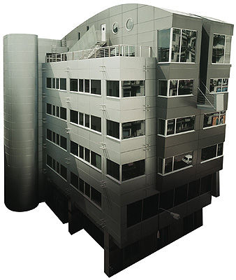 acabado anodizado , con los acabados superficiales C0/EV1, C31, C32 y C34. Los paneles se componen de dos láminas superficiales de aluminio y de un núcleo de material plástico. La realización del diseño en tono metalizado mate ha sido posible gracias al empleo de lacas basadas en fluoropolímeros, que se aplican mediante un proceso de lacado en continuo (coil coating). Los nuevos acabados superficiales