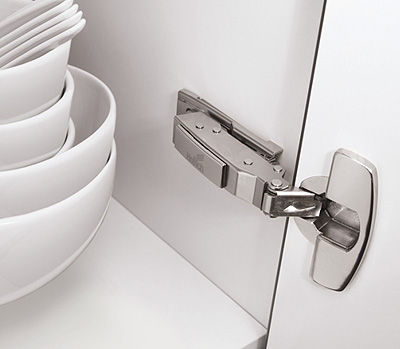 La reducida fuga de 4 mm, incluso en puertas de canto vivo de hasta 22 mm de grosor, resulta tan conveniente para el fabricante de muebles y cocinas como la escasa profundidad de cazoleta de 12,8 mm. A ello cabe añadir que el nuevo suplemento también puede emplearse junto con la serie de herrajes "Intermat". Esto ofrece ventajas, ante todo, a la hora de aplicar herrajes especiales.