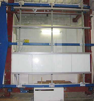 El banco de ensayos también permite realizar el procedimiento definido en la norma AAMA 501.6-01 en el que se realiza exclusivamente el ensayo sísmico buscando la resistencia última de la fachada ligera frente a movimientos horizontales, evaluándose el resultado mediante la especificación del momento en el que se producen roturas o caídas de vidrios.