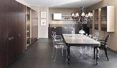 La nueva gama ofrece un amplio abanico de posibilidades para amueblar la cocina según los gustos y las necesidades más personalizadas ya que combina armarios empotrados con acabado en roble moro, frentes acristalados ahumados, y puertas correderas que ocultan los electrodomésticos y las estanterías. Y siempre logrando un perfecto equilibrio entre todos ellos.