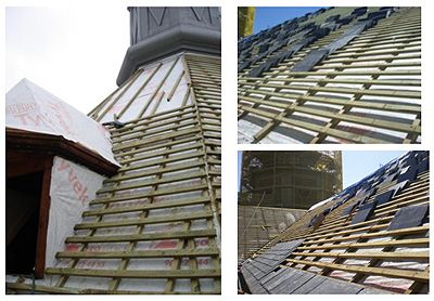 El estudio de arquitectura Espacio Novecento, con Emilio Sánchez como arquitecto responsable, especializado en proyectos de rehabilitación y reforma, fue seleccionado para actuar sobre los casi 3.000 m² de la castigada cubierta inclinada de pizarra en este edificio, y llegó a la conclusión técnica de retirar toda la pizarra existente y la ripia donde apoyaba, así como de mantener y consolidar tratamientos ignífugos, todas las cerchas, vigas y parecillos de madera que conformaban la estructura de la cubierta.