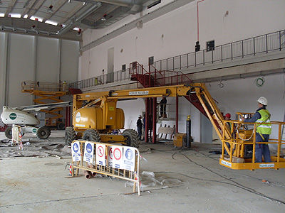 En las inmediaciones del aeropuerto sevillano de San Pablo, se ha levantado la escuela de pilotos de Airbus. El recinto ya dispone de la cubierta, pero para acondicionar la nave, que debe albergar las aulas y el simulador de vuelo, se han solicitado plataformas elevadoras de Hune.