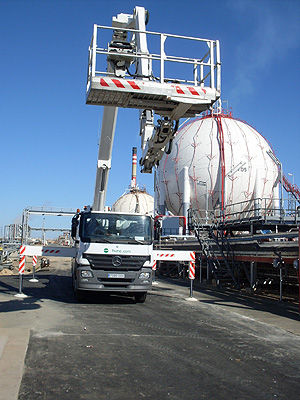 La ampliación de la refinería de Huelva se ejecuta en un área de 73.000 m² y permitirá a la empresa aumentar su capacidad de producción. Entre las distintas actuaciones que se realizan en la instalación, destaca el recubrimiento de las tuberías para el que se ha alquilado una espectacular plataforma elevadora sobre camión de 62 metros.