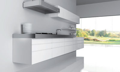 "Attraction". "Atlas", nuevo dispositivo de fijación para módulos bajos suspendidos en cocina y baño "Atlas" es un producto único en el mercado, no se trata de un colgador, sino de un dispositivo de fijación de módulos bajos de cocina y baño a la pared que compensa la fuerza de brazo de palanca de los muebles suspendidos, equipados con una gran cantidad de cajones, cestos y elementos extraíbles, muchas veces fuertemente cargados sobre todo en cocina.