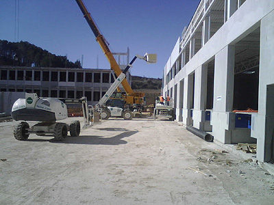 Para esta fase de las obras, se ha solicitado a Hune plataformas elevadoras, como brazos articulados diesel de 26 y 16 metros y tijeras diesel de 12 metros para completar los trabajos en la estructura y en la instalación del sistema de seguridad contraincendios, así como en la instalación eléctrica del edificio.