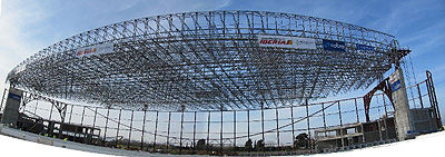 La cubierta, realizada por la firma guipuzcoana Asteca Estructuras, se ha construido en el suelo durante cinco meses. Dicha cubierta está formada por 12.800 barras de acero unidas entre sí por 3.000 esferas que hacen de unión entre las barras.