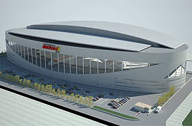 Este hangar destaca por su singular diseño en forma ovalada y con una pared acristalada de 155 m² con la cual se aprovecha la luz natural.