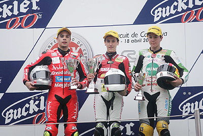Hune Racing , Maverick Viñales, se ha aupado hasta el tercer peldaño del podio en la categoría de 125 GP, en la primera cita del nacional de velocidad disputado en el Circuito de Cataluña. Viñales se vio obligado a remontar posiciones, tras un problema con el embrague, y ya piensa en la próxima carrera de Albacete el 9 de mayo.