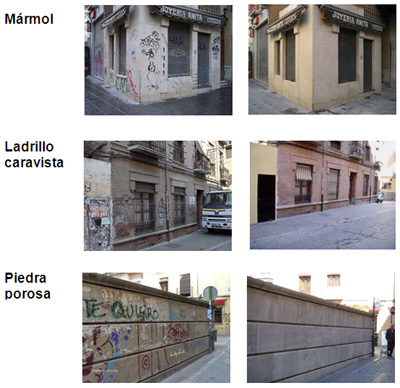 Usos Indicado para retirar pintadas de todas las superficies porosas: lisas o rugosas, como por ejemplo: ladrillo, hormigón, terrazo, adoquines, baldosas porosas, tejas, piedra natural al corte, abujardada, o pulimentada como granito, mármol, arenisca, etc. Es también efectivo en cristal, cerámica, porcelana, baldosas vidriosas, ladrillos vitrificados y lechadas de cemento, etc.
