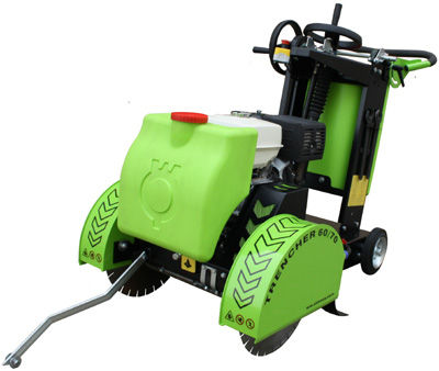 Trencher 60/70 , por su parte, no requiere prácticamente mantenimiento y brinda una alta rentabilidad. Es la única con dos discos que regula el ancho de corte (entre 60 y 70 cm) y, gracias su doble depósito de agua de 60 litros de capacidad, tiene la autonomía más elevada del mercado. Entre otras mejoras, cabe destacar su corte con doble disco (o con uno sólo, en izquierda o derecha) y su manillar antivibraciones, que permite minimizar el cansancio del operario y las bajas laborales.