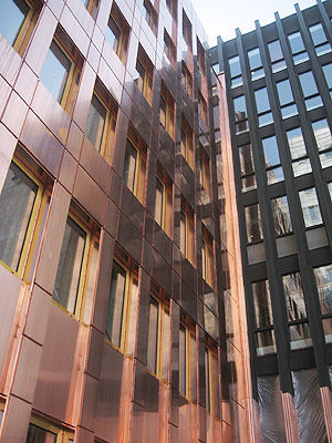 Históricamente, el uso del cobre para las grandes edificaciones de uso público, como bibliotecas o museos, ha sido altamente apreciado. Aunque sigue siendo una opción popular para los edificios a gran escala, el cobre se abre paso cada vez más en el revestimiento de fachadas de oficinas e incluso de uso residencial.
