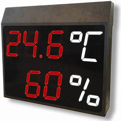 El Visualizador LED CEPRA de Temper Clima muestra la temperatura y la humedad relativa mediante sendas sondas conectadas directamente a la parte posterior de la pantalla. La sonda de temperatura es de bulbo y la de ambiente puede suministrarse opcionalmente. Este visualizador está preparado para ser instalado sobre un soporte estándar 100x100 mm tipo VESA, siendo posible su montaje mural directo o empotrado. Además, dispone de una salida RS 485 modbus para transferencia de datos, así como de conexión Ethernet opcional.