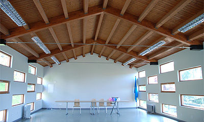 La biblioteca es además una sala de reunión y celebración de eventos, con lo que la altura, el espacio y el confort que ofrece la combinación de madera y pladur hacen que el visitante se encuentre a gusto en su interior" .