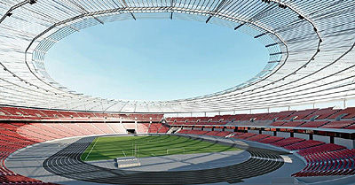 "Con frecuencia, los estadios deportivos se convierten en edificios emblemáticos para una ciudad o país, y los arquitectos se esfuerzan por crear nuevas formas únicas, que incluyen enormes cubiertas con curvas y acristalamientos espectaculares. El gran tamaño de estas cubiertas, su exposición a la intemperie y la tendencia global hacia mayores necesidades de carga para las estructuras de gran tamaño requiere la aplicación de materiales de acristalamiento especiales y ligeros. Nuestra nueva placa ultrarrígida Lexan Thermoclear puede satisfacer las necesidades de los diseños más grandes y más difíciles en las condiciones más duras, y brindar protección y belleza a largo plazo" .