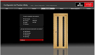 Infinity by Artevi, presenta el primer configurador de puertas Infinity by Artevi presenta un sistema de configuración de puertas on-line como complemento a su página web. Todos los usuarios y clientes de forma intuitiva, rápida y completa pueden diseñar cualquier modelo de Infinity a través de la página web