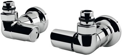 La válvula termostatizable y detentor a doble escuadra, doble reglaje, acabado cromado pulido, forma parte de la serie de válvulas para radiadores de baño, diseñada para instalarse en elementos terminales con conexión inferior, tales como toalleros o paneles radiantes.