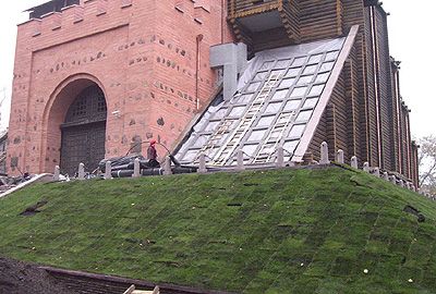 DuPont™ Typar® SF 40 combinado con geosintéticos en forma de espiga para resolver el problema de drenaje durante la reconstrucción de la Puerta de Oro, uno de los pocos monumentos restantes de Kiev.