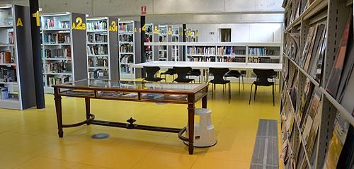 "el mobiliario es diáfano y la señalización y ubicación del material es asequible y de fácil acceso para los usuarios. Los archivos móviles del almacén interno han resultado muy prácticos para la ubicación de los distintos materiales y formatos, ya que el diseño de los mismos se ha adaptado a las necesidades de nuestros fondos. Además, cuando nos surjan nuevas necesidades vemos que el mobiliario permitirá adecuarse a los cambios" .