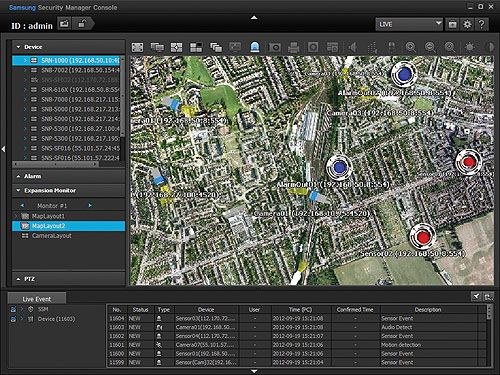 Samsung Security Manager permite la instalación de hasta 1.152 cámaras en múltiples edificios o lugares para su gestión centralizada y facilita, a los usuarios autorizados, la monitorización de imágenes grabadas o en directo desde cualquier punto de la red.