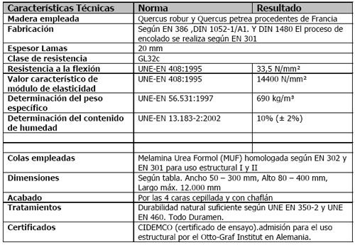 • Ahorro en sección por la alta clase de resistencia (Roble GL32h) que supone un ahorro económico.