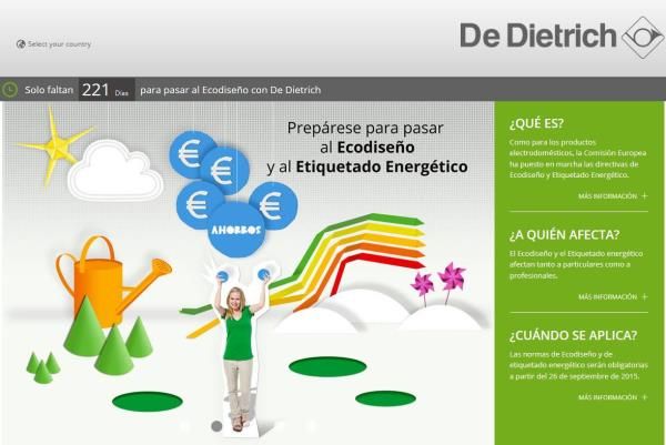 De Dietrich ha desarrollado un sitio web donde pueden consultarse contenidos destinados a explicar de manera clara y sencilla aspectos relativos al calendario de introducción de la directiva europea, una descripción del etiquetado energético, los productos/soluciones más eficientes a su disposición, etc. Asimismo, podrán descargarse documentos explicativos o remitir consultas vía mail al servicio de atención personalizado
