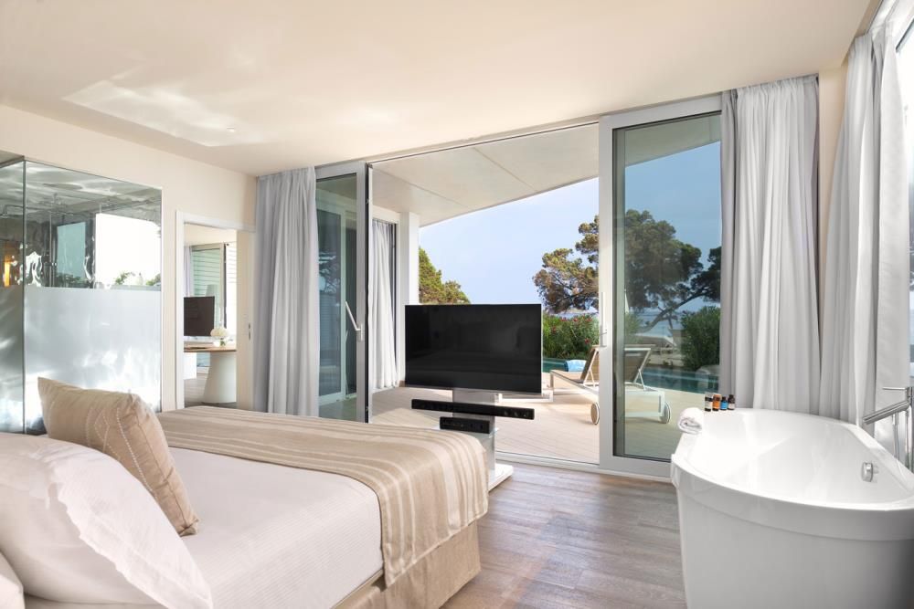 El hotel, con acceso directo a la playa y espectaculares vistas al mar, tiene un diseño diáfano con interiores modernos y de estilo ibicenco para ofrecer un ambiente exclusivo a quienes buscan relajarse y disfrutar. La playa de S'Argamassa está muy bien ubicada entre Cala Martina y Cala Prada, con arena blanca muy cuidada y aguas calmadas y ofrece una amplia oferta de deportes acuáticos y excursiones en barco, ocio y restaurantes.