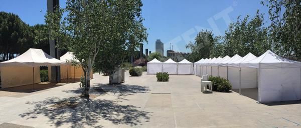Las carpas Mastertent son ideales para este tipo de muestras, ya que funcionan a la perfección como estand o tienda al aire libre. Al poder juntar entre si todas las carpas que se desee y la posibilidad de colocar paredes intermedias para separarlas, se puede crear un pasillo con las carpas, creando que la gente paseen entre ellas para poder disfrutar de lo que lo comerciantes ofrecen.