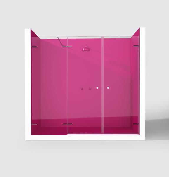 El diseño de esta mampara tanto la línea de la serie como la originalidad de las bisagras conceden al espacio del baño un estilo único por la sobriedad de los herrajes, la elegancia de su transparencia y el diseño minimalista del conjunto, son cualidades propias de las creaciones que confieren carácter y personalidad a la estancia.