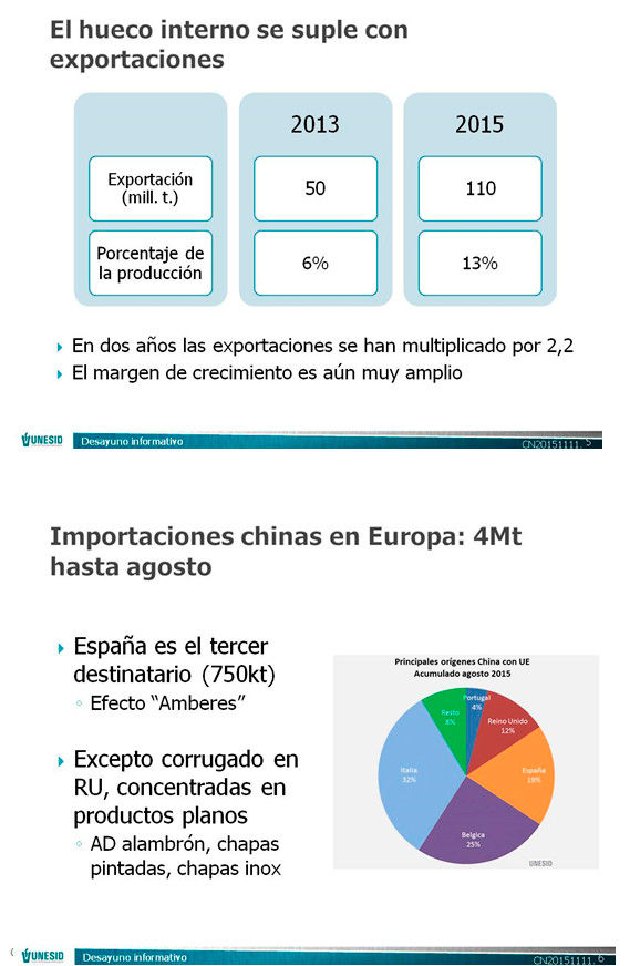 Estas importaciones llegan a España alentadas por una tibia recuperación económica pero, sobre todo, como consecuencia del exceso de capacidad instalada en China, que obliga a las empresas de dicho país a exportar, a precios de derribo, a todo el mundo.