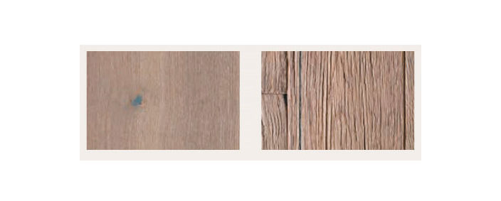 También es posible aplicar un tratamiento de cepillado profundo en los tablones. Los modelos en Punta Hungría y Cenefas. Con el cepillado profundo, la madera se lija con un cepillo de metal para darle una estructura más áspera, la madera blanda entre las vetas adquiere un tono aún más rugoso. Este tratamiento da al suelo un aspecto duro y desgastado. ¡Pura naturaleza!