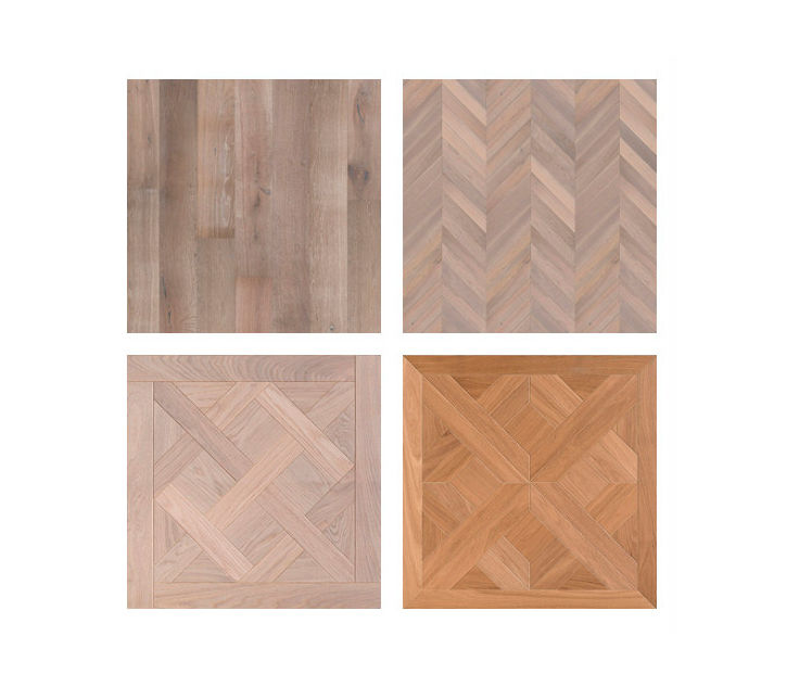 Elija entre 4 patrones de diseño. Además de los anchos tablones, tenemos dos diseños de lujosas losetas con o sin cenefa, y un suelo en punta hungría muy elegante.
