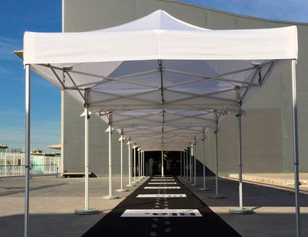 Las carpas plegables Mastertent están disponibles en 12 colores e infinidad de medidas, gracias a la posibilidad de incorporar voladizos de apertura automática en 1, 2 o 4 lados el techo, como a la opción de poder unir las carpas entre sí. Además todas las carpas Mastertent se pueden personalizar con el logo, marca, texto o imagen deseada, pudiéndose adaptar para cualquier tipo de evento y función, como por ejemplo punto de información, estand promocional, ferias, mercados…
