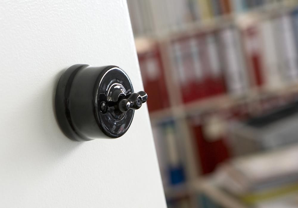 Foto: Interruptor rotativo Garby de Fontini acabado porcelana negra. Creado con los más altos estándares de calidad que exige la normativa actual,