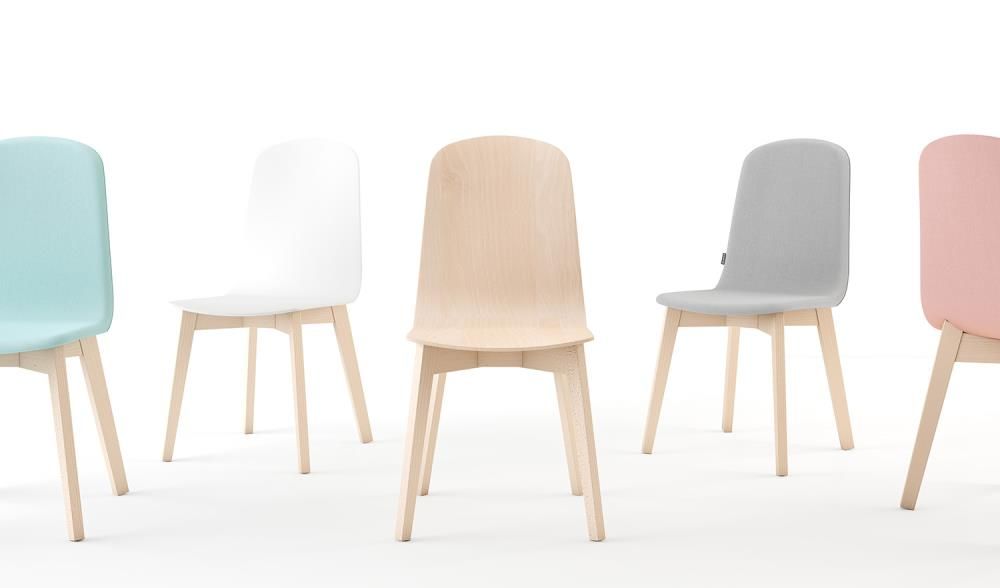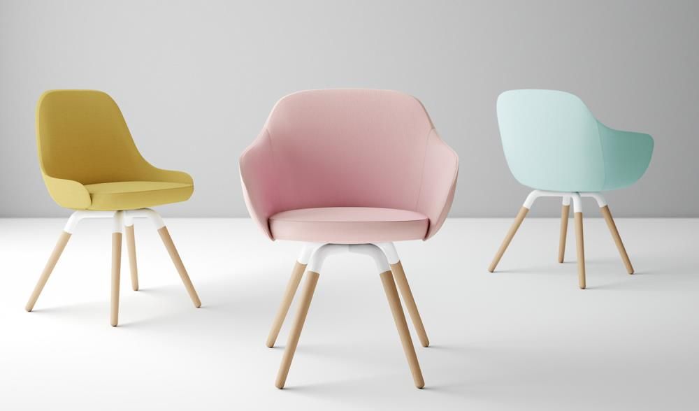Silla Dolce con los nuevos colores de tapizados de CANCIO: azul, nube y rosa. Una de las novedades en tapizados es el color