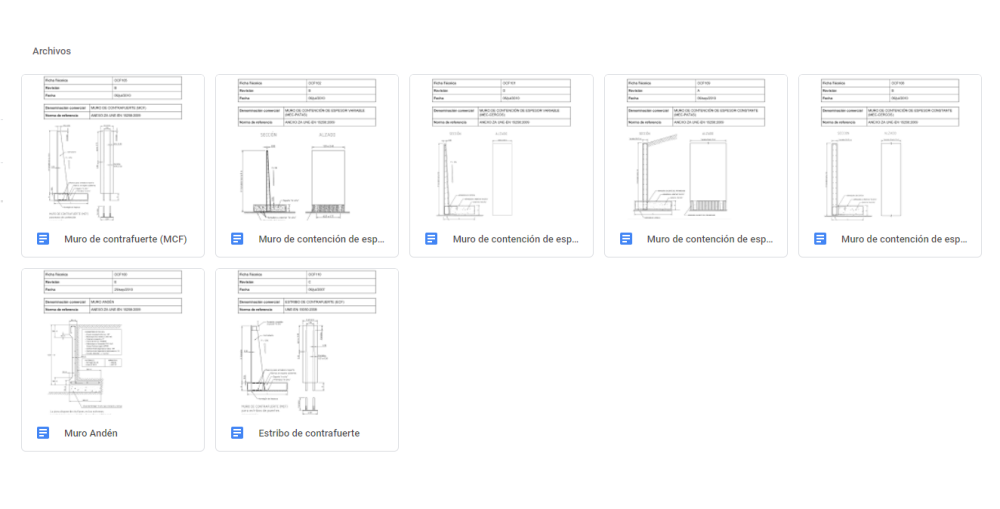 Foprar pone a disposición de todos sus clientes las hojas de especificaciones de su oferta en muros de hormigón de espesor variable, espesor constante, de contrafuerte y de andén