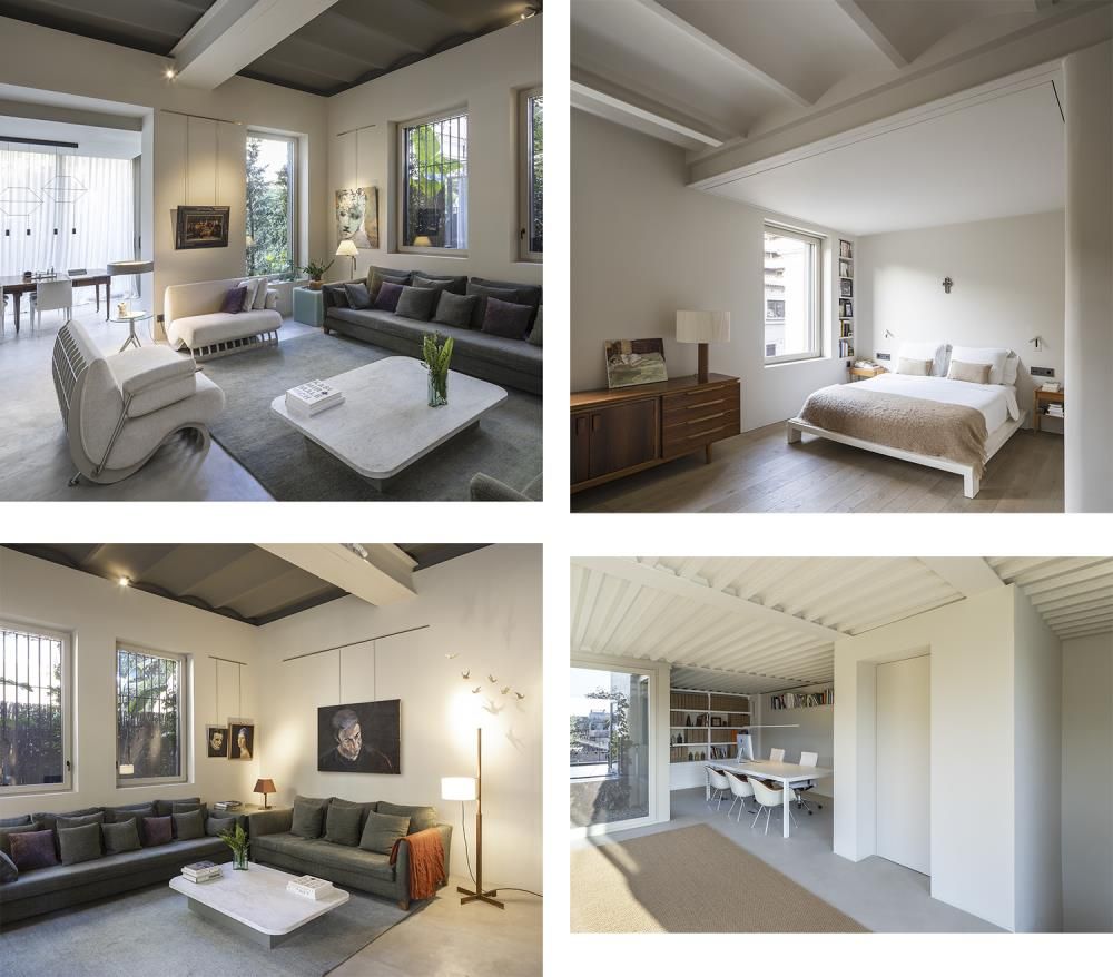 Todas las zonas de la vivienda están diseñadas bajo el mismo denominador común de elegante sencillez y sobriedad. Es a través de la combinación de los estilos contemporáneo y clásico, la mezcla de diferentes elementos de mobiliario, iluminación y complementos de decoración, el uso de diferentes materiales (madera, mortero de cal o microcemento) así como, colores y texturas que, se consigue una armonía constante entre la construcción tradicional y la moderna. Colores naturales como el blanco, tierra, ocre y verde contrastan con el negro en pequeños detalles en los baños, las manillas, interruptores de luz o luminarias. Un todo que genera un lenguaje de elegante minimalismo y añade valor a todos los espacios de la casa.