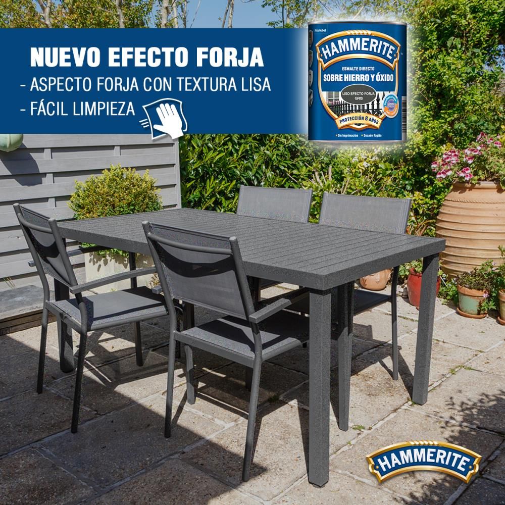 La gama de esmaltes antioxidantes Hammerite, la marca internacional de AkzoNobel especialista en la protección del metal, incorpora el nuevo acabado aspecto forja con textura lisa. Este nuevo lanzamiento ofrece un acabado metálico natural de forjado fino, una de las tendencias actuales en acabados decorativos.