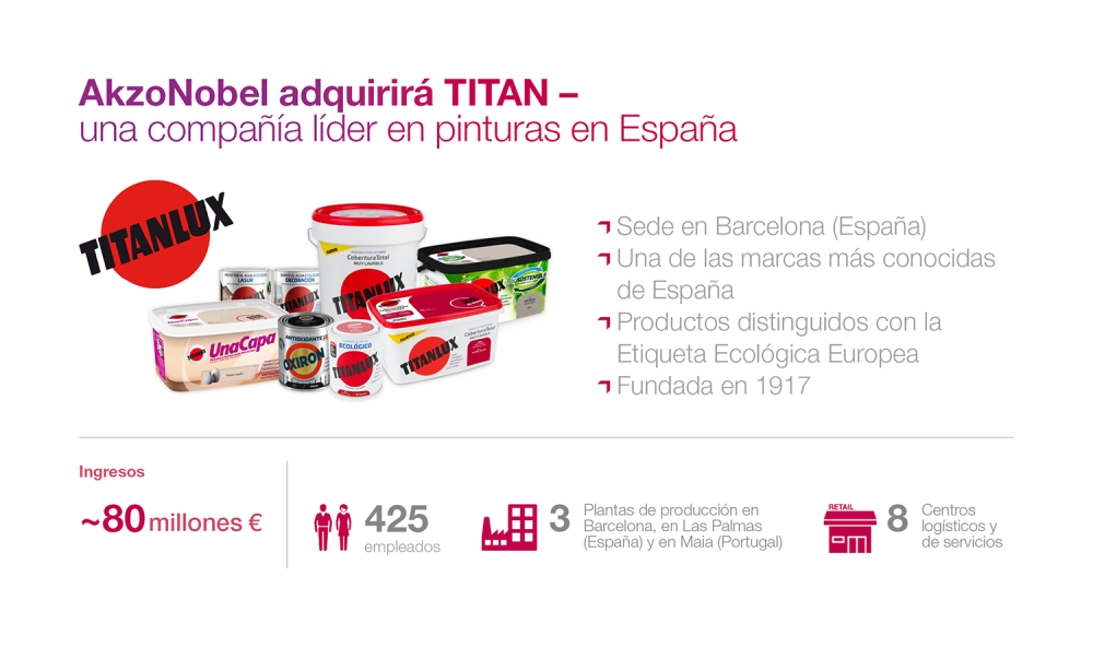 Alberto y Joaquín Folch-Rusiñol , de INDUSTRIAS TITAN S.A.U., añaden: "Estamos encantados de traspasar el negocio de decoración de TITAN a un líder global como AkzoNobel. Estamos convencidos de que el equipo de AkzoNobel cuidará del legado de TITAN de la misma forma que lo ha estado haciendo la familia durante más de 100 años."