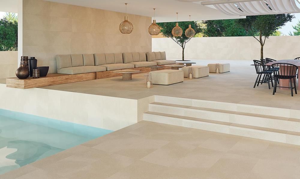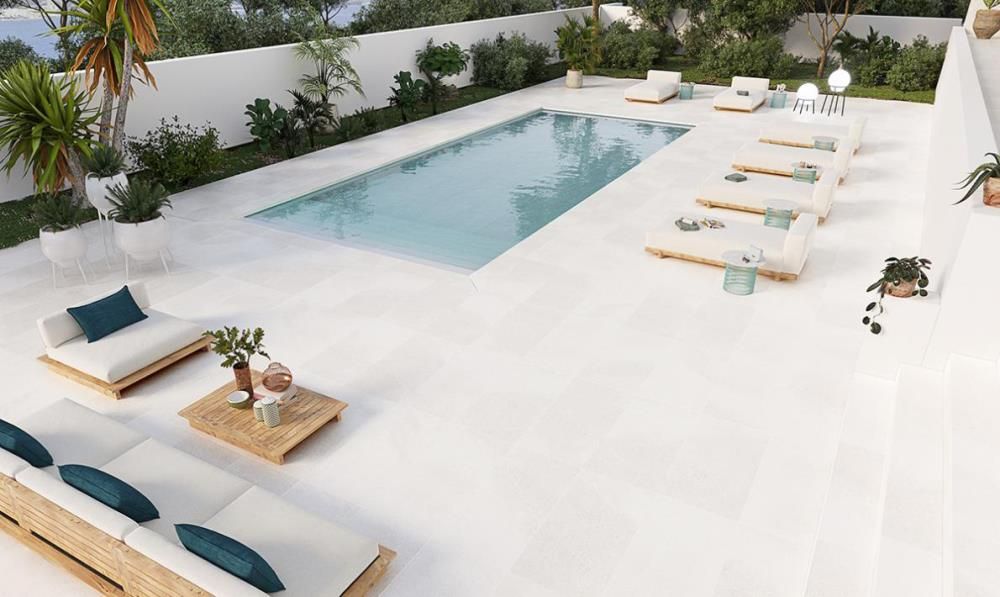 El diseño de esta piedra, moderna y suave, es perfecto para terrazas con líneas rectas y arquitectónicas. Los tonos neutros y la textura suave de una piedra natural, hacen que la