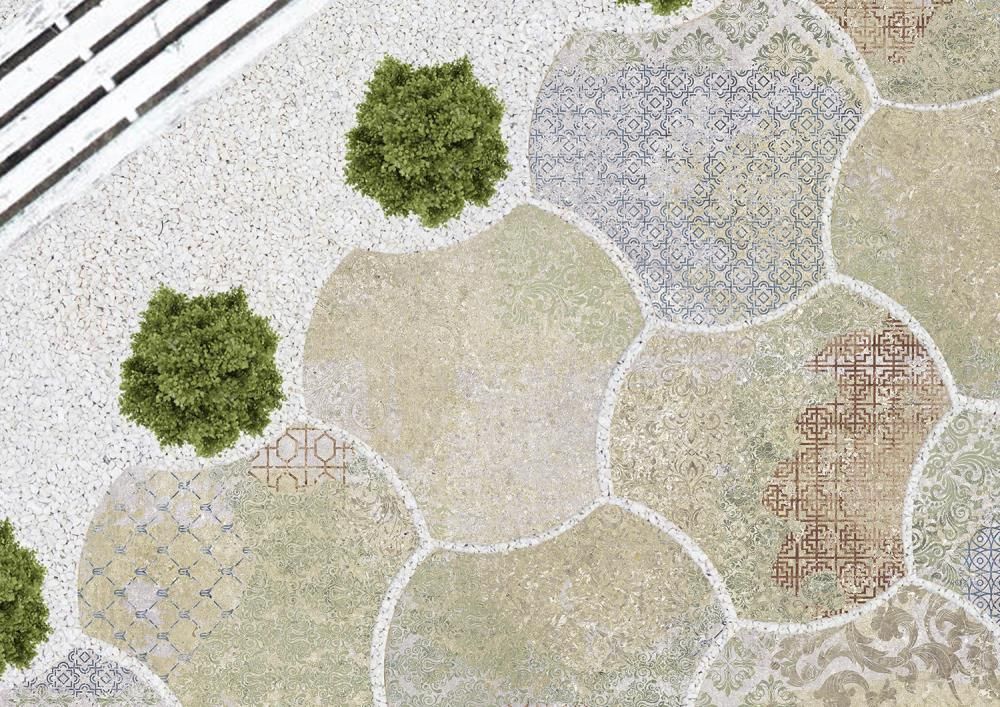 Pavimento 2cm OUTDOOR Altea Elda de Aparici. Pavimento inspirado en el hidráulico.